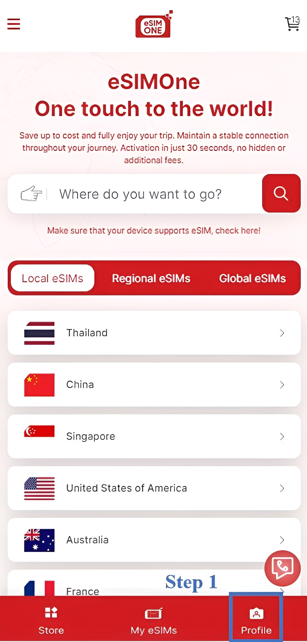 Download the Esim Global app to purchase, manage, and top up your eSIMs anytime, anywhere!
